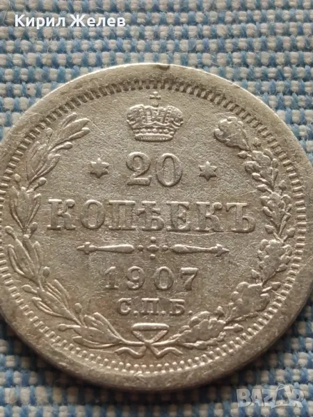 Сребърна монета 20 копейки 1907г. Руска империя Император Николай втори за КОЛЕКЦИЯ 21034