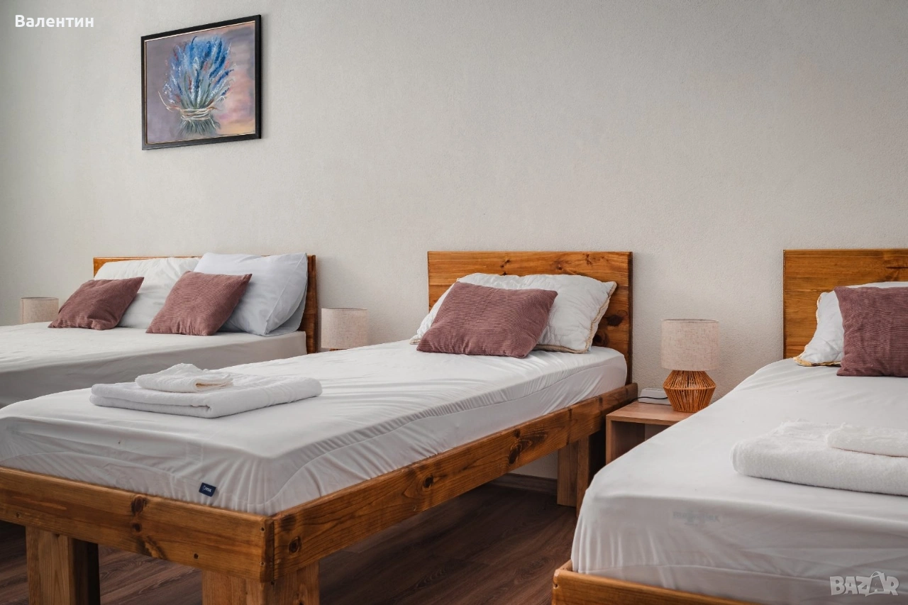 удобни легла, гардероби, нощни шкафчета и висококачествено спално бельо.