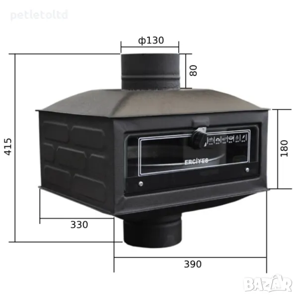 - Височина с кюнците: 41,5 см - Височина на фурната: 18 см