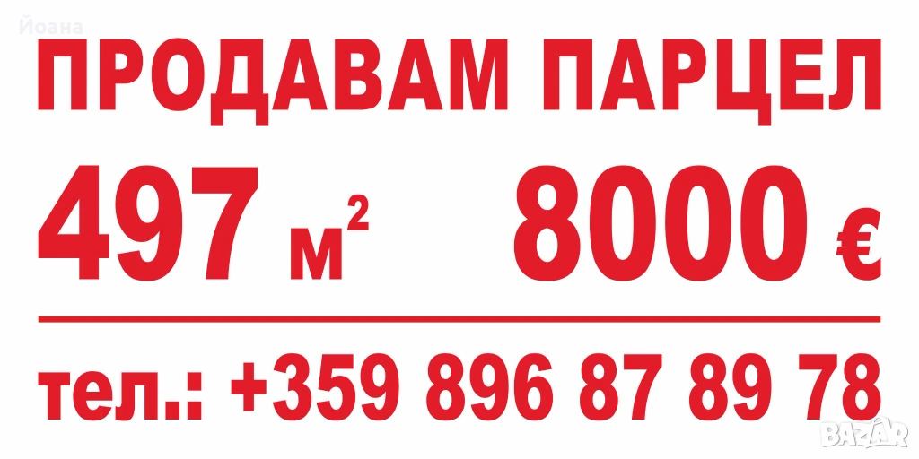 Парцелът е 497м2, без ток и вода, в близост има. За повече информация, пишете на ЛС или звъннете на 0896878978.Стара цена 10000 евро,нова цена 8000 евро.