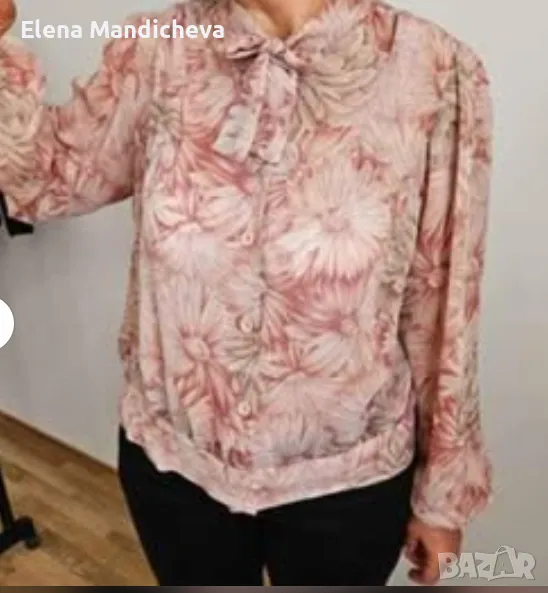 8 лева блуза риза загадъчно прозрачна с флорален мотив розови цветя размер L / XL → Обява 48674661