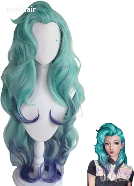Seraphine lol kda cosplay микс от зелена и лилава перука → Обява 48674827
