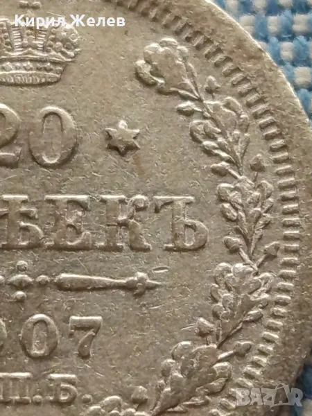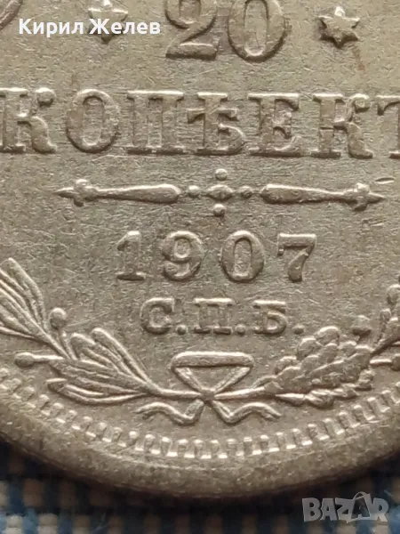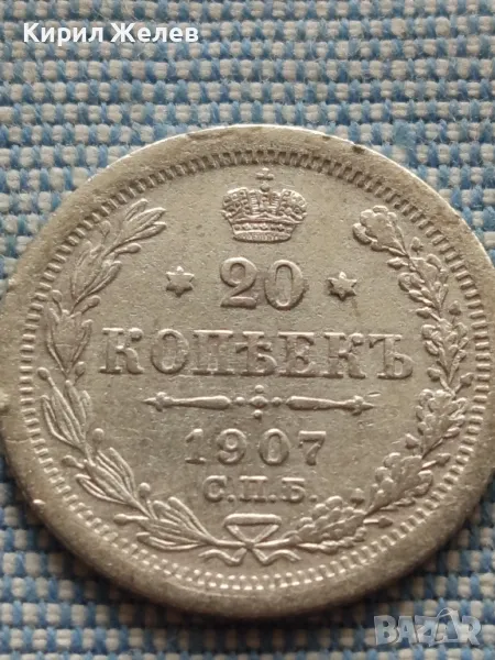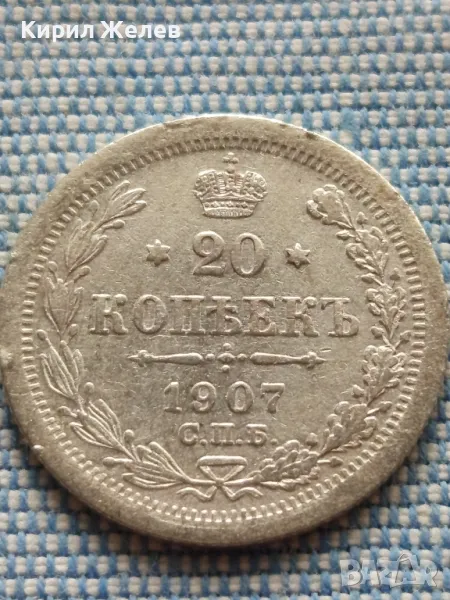 Сребърна монета 20 копейки 1907г. Руска империя Император Николай втори за КОЛЕКЦИЯ 42593