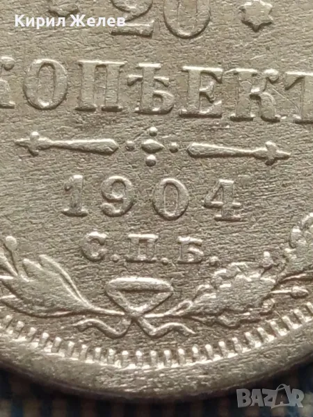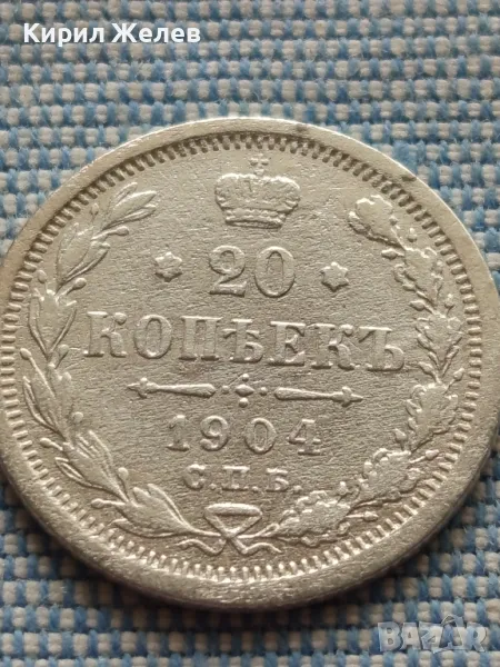 Сребърна монета 20 копейки 1904г. Руска империя Император Николай втори за КОЛЕКЦИЯ 49439