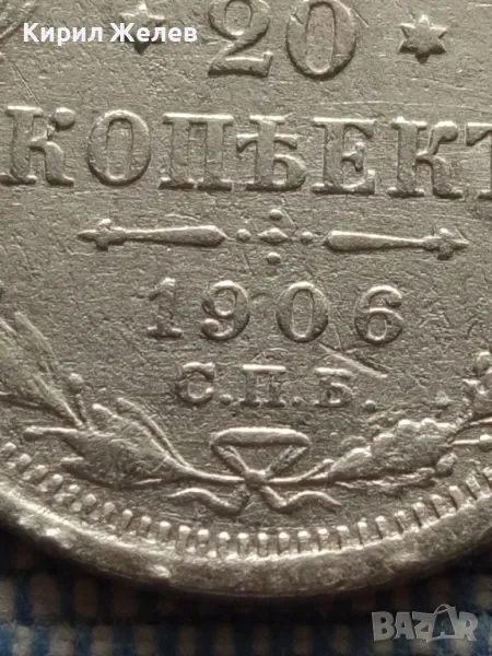 Сребърна монета 20 копейки 1906г. Руска империя Император Николай втори за КОЛЕКЦИЯ 49469