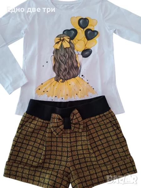 Детски комплект от блуза с дълъг ръкав и къси панталонки.