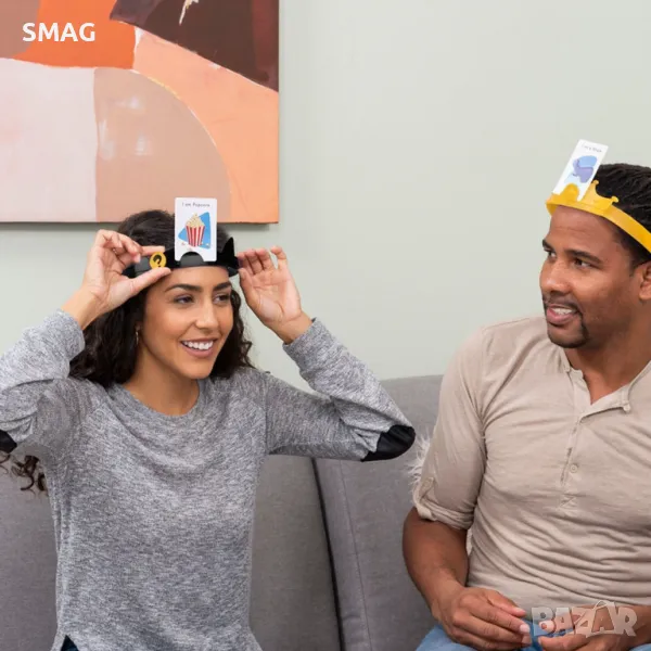 Класическа игра като Hedbanz се завръща с чисто нови карти, актуализирани ленти за глава и свеж дизайн. ВЪЛНУВАЩ НОВ ИЗБОР СЪРЦЕ: 6 нови, забавни ленти за глава с подривни дизайни като котка, корона, еднорог, пират и други! ПОДНОВЕНИ КАРТИ И СКИЦИ! Изберете лентата за глава, която ви харесва най-много. Вземете карта с изображение, без да гледате скицата. Поставете венеца и фиксирайте картата върху него, като изображението е обърнато към останалите играчи. Сега завъртете пясъчния часовник и започнете играта! Задайте въпроси с да или не и се опитайте да познаете какво показва вашата карта. Първият играч, който събере три значки за резултат, печели.