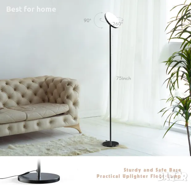 Можете да регулирате различни ъгли, за да избегнете пряка светлина. Светлината на led подовата лампа за спалня може да свети директно върху тавана, правейки стаята ви по-светла. Продължителността на живота на светодиодите е 50 000 часа/20 години (при 3 часа на ден), тази подова лампа може да спести много енергия. Няма нужда от смяна на крушката.