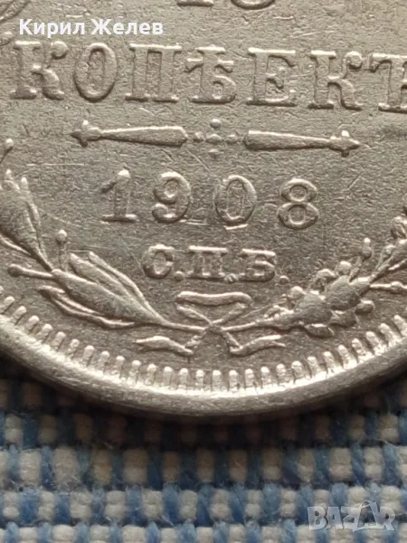 Сребърна монета 15 копейки 1908г. Руска империя Император Николай втори за КОЛЕКЦИЯ 49441