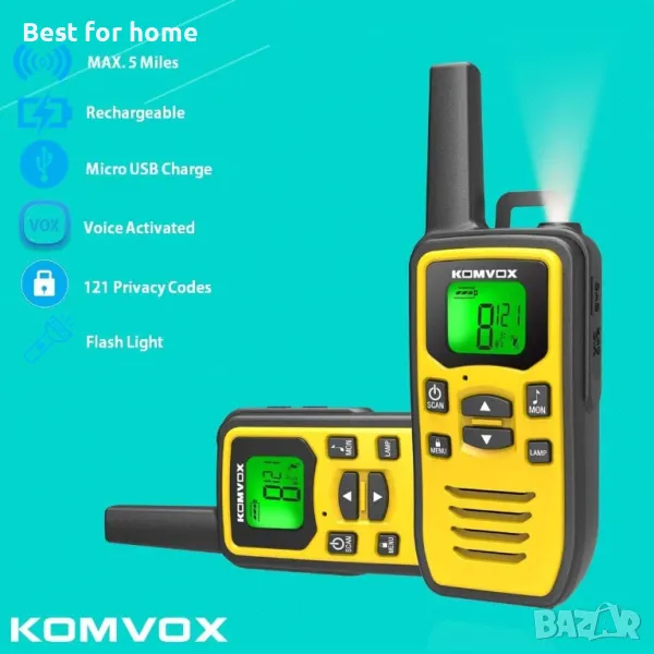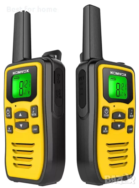 KOMVOX GT60 е уоки токи от начално ниво с професионална функция. Това е готино жълто лице и дизайн с висока видимост е за енергични тийнейджъри, младежи и възрастни с деца. Това е чудесен комплект за изследване на открито за къмпинг, туризъм, риболов и лов.