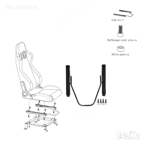 Седалката се предлага с единичен регулатор и двоен плъзгач, който ви позволява да регулирате ъгъла на облегалката чрез завъртане на 180 градуса.