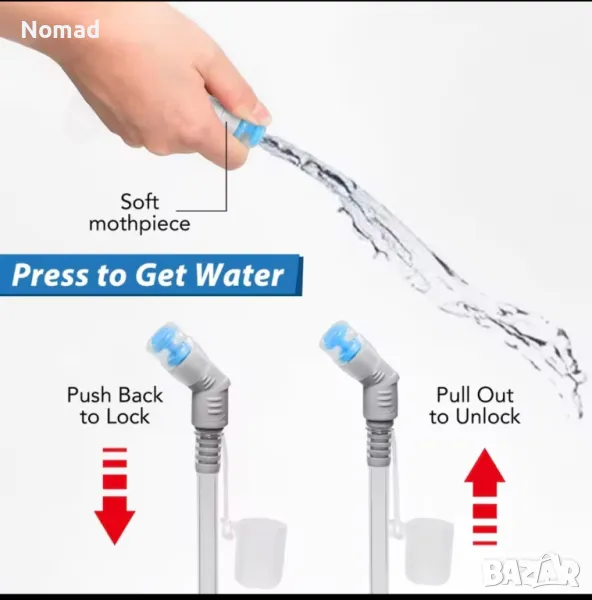 - Благодарение на използването на система за включване и пускане, хидратирането и отварянето могат да се извършват бързо и удобно. Специално проектираната превключваща система може да затвори здраво клапана по време на пътуване и разглобяемия интерфейс