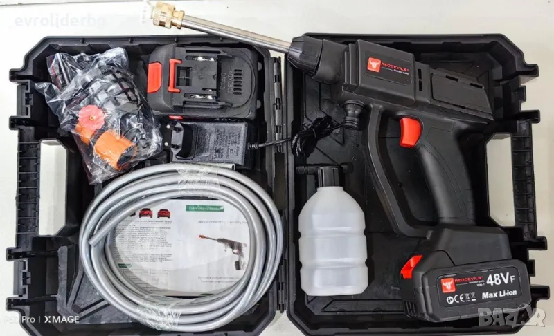REDDEVILS С ДВЕ ЛИТИЕВО-ЙОННИ БАТЕРИИ 48V/4.0Ah И ДВЕ СМЕНЯЕМИ ДЮЗИ ЗА ВИСОКА ЕФЕКТИВНОСТ НА ПОЧИСТВАНЕТО. Описание на комплекта: