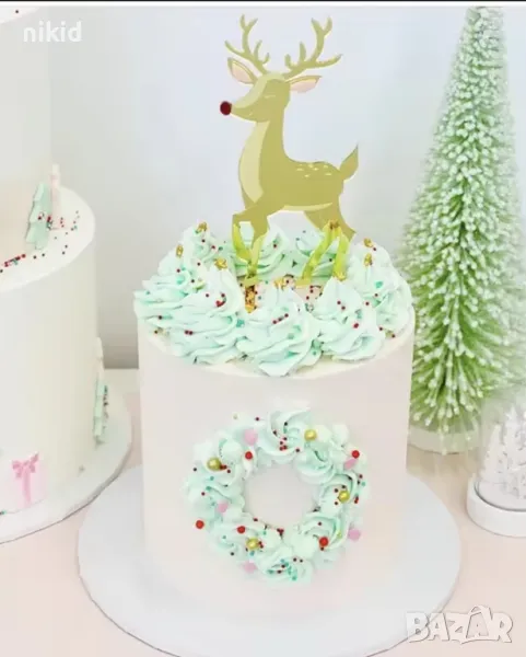 елен златен коледен топер украса за торта декор акрил → Обява 48677662