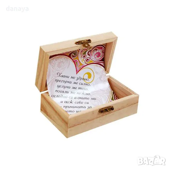 Ръчно изработена дървена кутия с послание за Свети Валентин – Подарък от сърце!