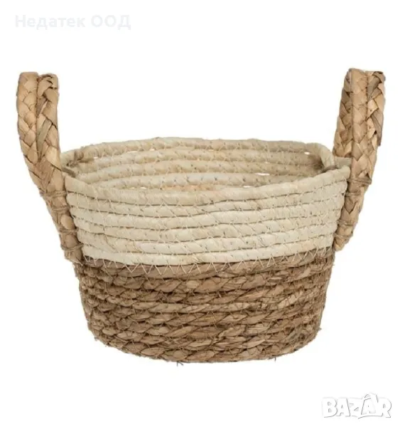 Кошница за съхранение от естествен материал, Бежово, Ø22x12см → Обява 48677722