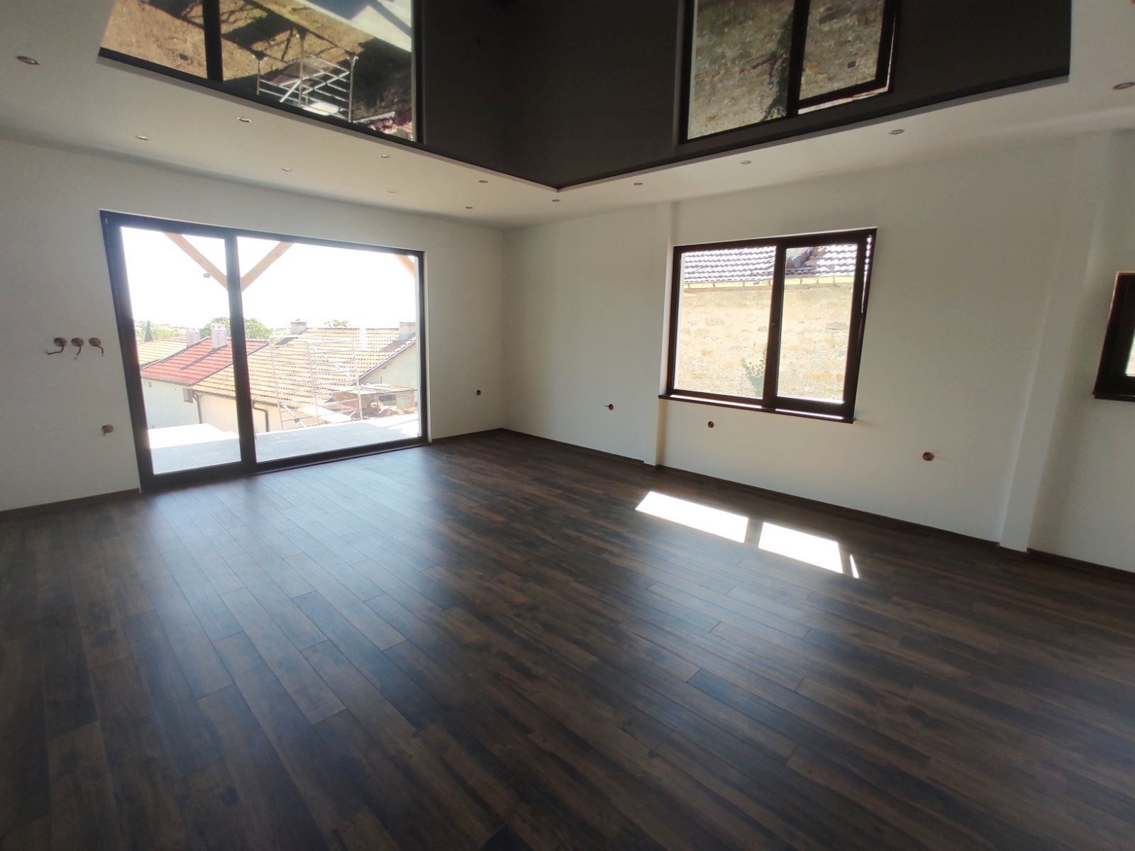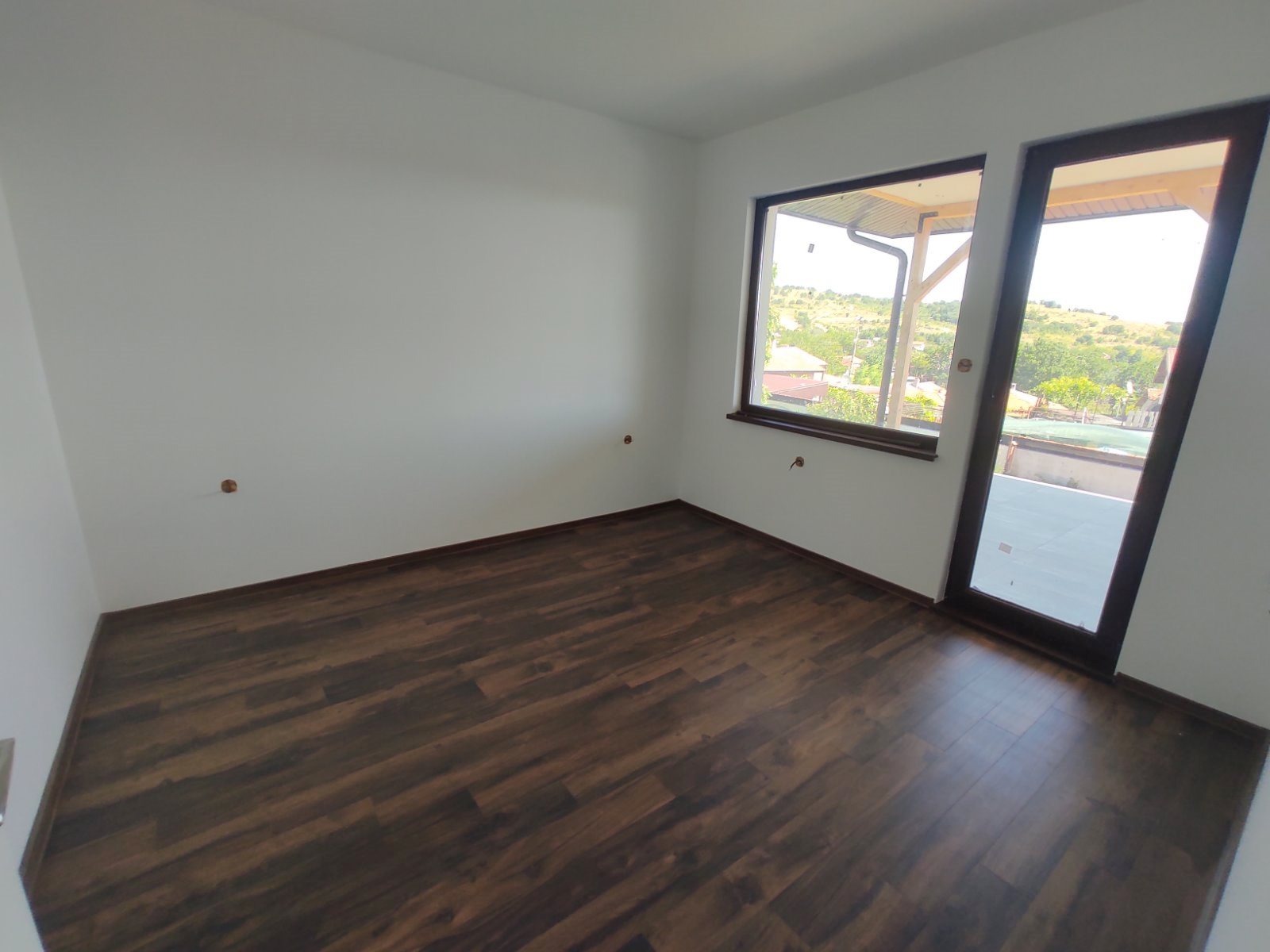 BASF с дебелина 10 см и плътност 26%. Отвътре на стените към дървената конструкция ще бъде поставена каменна вата 90 кг, а над нея минерална вата с шумо и топлоизолационни качества. След ватите ще бъде монтиран двупластов гипсокартон на метална скара. В баните и мокрите помещения ще бъдат положени фаянсови плочки на Ceramika Fiore 1-во качество. Фасадното финишно покритие ще бъде силиконова мазилка ГранопорТоп на фирма Baumit. Покривите ще се изпълнят от дървена дълбоко импрегнирана конструкция защитена с Body bi боя против пожар. След това ще бъде положена дъсчена обшивка, паровъзвратна мембрана BRAMAK, подкеремидни летви и керемиди на фирмата Tondach. Подовите настилки в къщите ще се състоят от 5 см топлоизолация от фибран и ламиниран паркет AC4 10 мм на фирмата QuickStep, с парафинова сглобка защитена от попадане на вода в сглобката.Допълнително към цената се начислява и частично ддс.