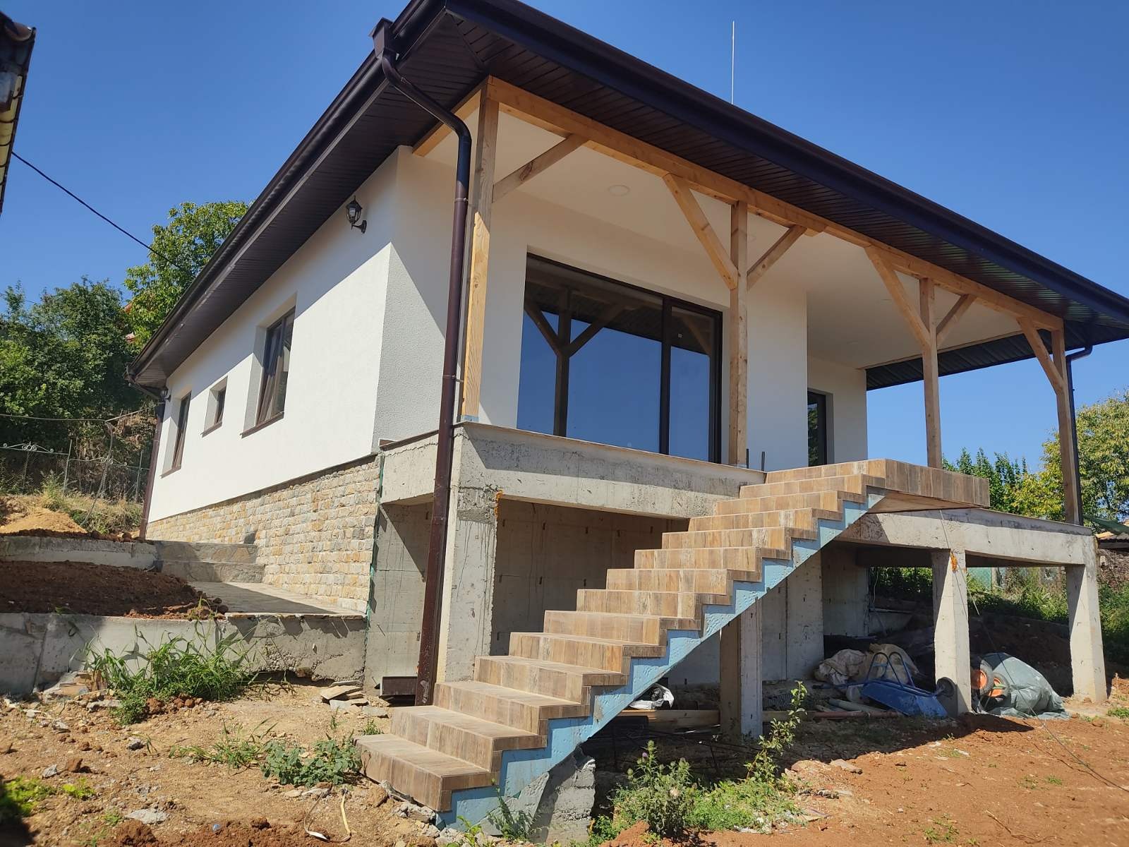 Конструктивно къщата ще бъде изградена от висококачествени, съвременни строителни материали. Цоклите на къщата ще бъдат изпълнени с клинкерна система тип камък. От север, изток и запад ще бъде положен дренаж в основата със хидроизолация. Собствен двор с площ от 490 кв.метра. Срок на завръшване 07.2025.Към цената допълнително се начислява частично ДДС.