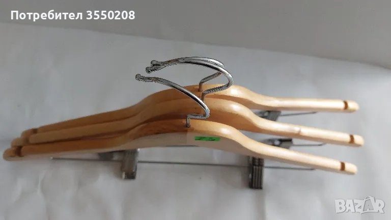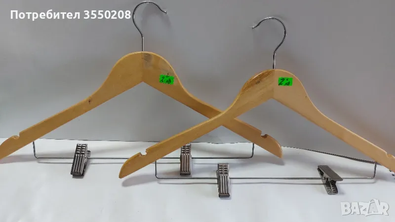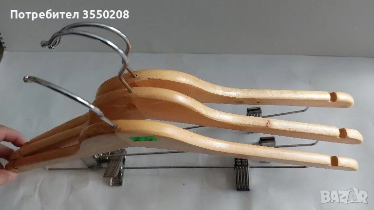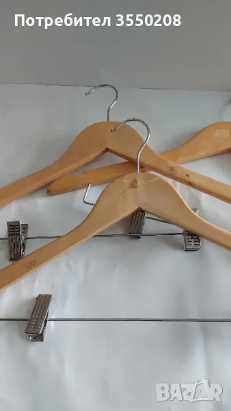 Дървени закачалки, нови и за панталони и за поли с щипки, 2 броя, цена 4 лева. Обща цена 5 лева за 3 броя. За лично предаване гр. София, кв. Слатина.