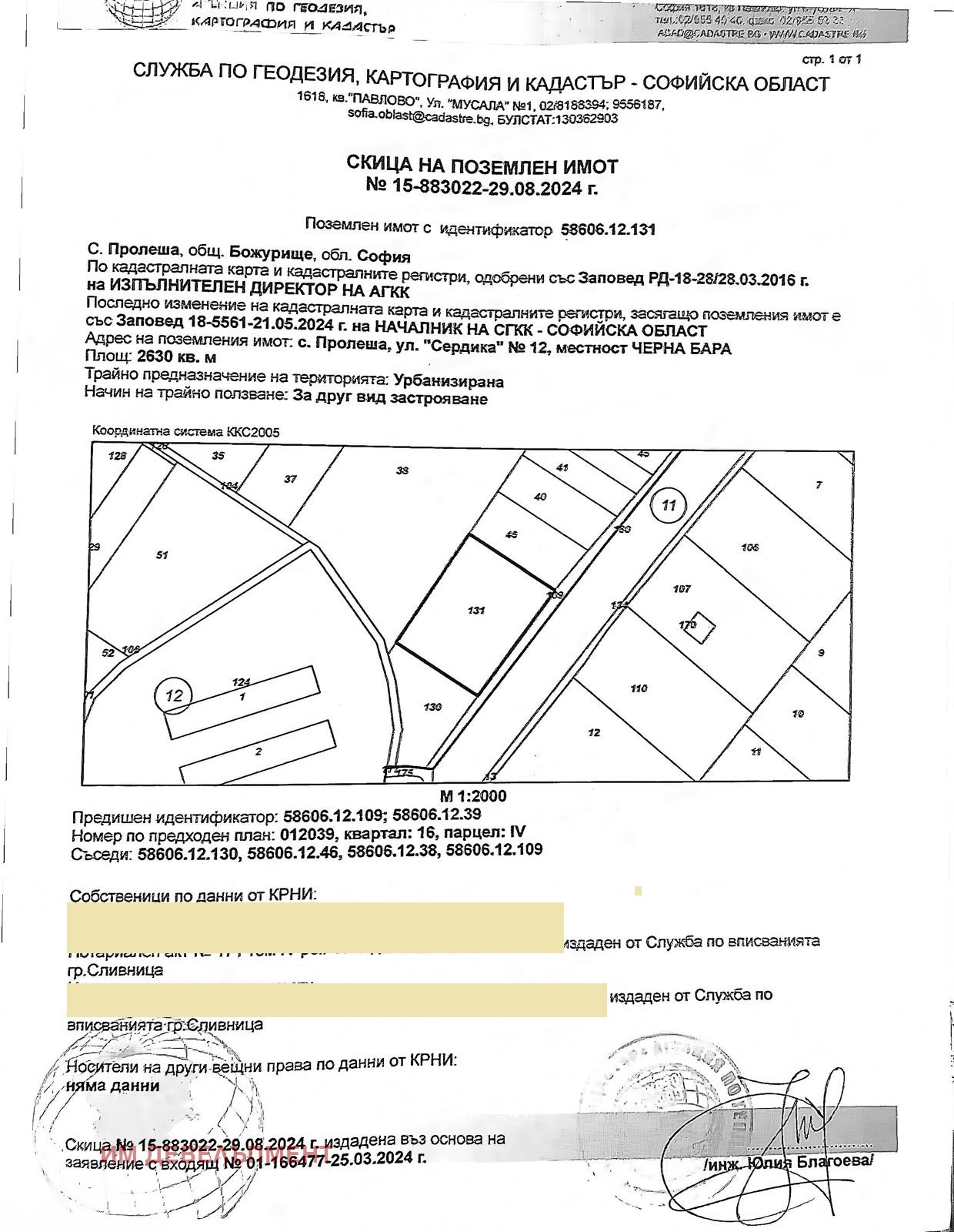 Иванов и Милев Пропърти Девелъпмент Предлага подходящ за промишлено строителство / склад, сервиз, малка производствена база и др. / Поземлен имот 58606.12.130 и 131, с квадратури 1200м2 и 2630м2 област София, община Божурище, с. Пролеша, м. ЧЕРНА БАРА, вид собств. Частна, вид територия Урбанизирана, НТП За друг вид застрояване, с обща площ 3830кв. м / с преминат ПУП 2024г.