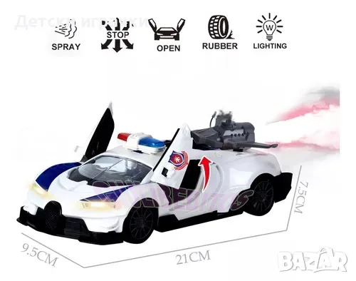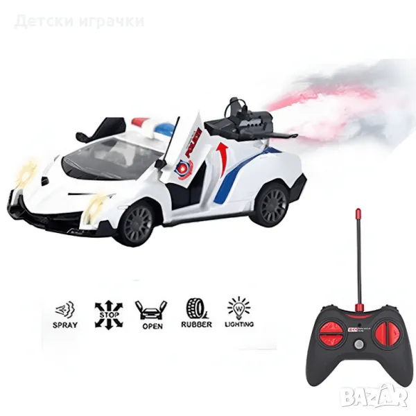 Детски полицейски автомобил с дистанционно управление, отварящи се врати и пушек ще бъде невероятен подарък за всяко дете.