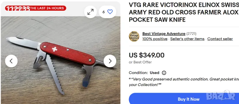 Изключително рядък и стар модел. От 70-те години.. Забележки: изтъркана червена боя,заточвано основно острие и счупено шило. Всичко това според мен го прави още по-автентичен и красив,но се отразява на цената. Публикувам снимка на такъв в перфектно състояние,за да се ориентирате за цената.