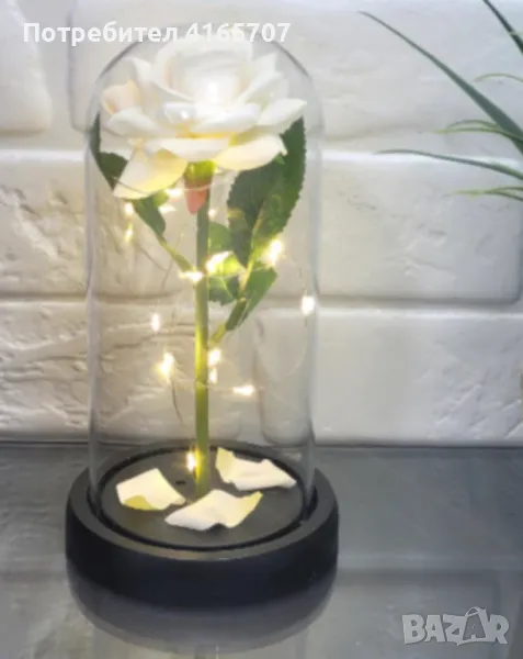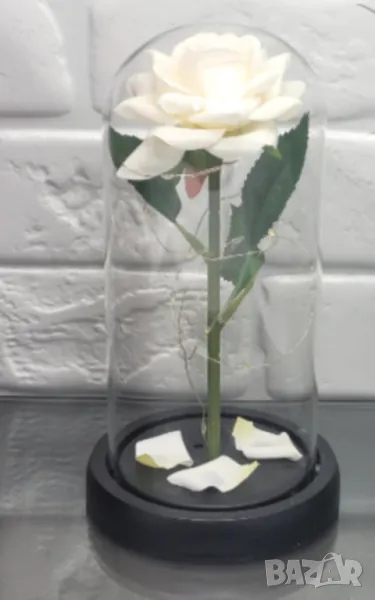 Бяла роза под стъклен купол - Вечна елегантност → Обява 48679339