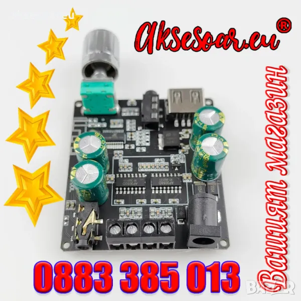 Име на продукта: Двуканален Hi-Fi стерео усилвател на платка с Bluetooth 5.0 AUX jack и USB audio port