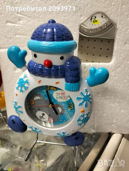 Детски настолен часовник изработен е от пластмаса и работис една батерия от волт и половина АА.. Механизмът не е безшумен. Размери на снежен човек: височина 30 см и широчина 16 см. Часовника е с махало (крачетата се движат, и ръчичките) САМО СНЕЖНИЯТ ЧОВЕК Е НАЛИЧЕН!!!GSM0898441909.