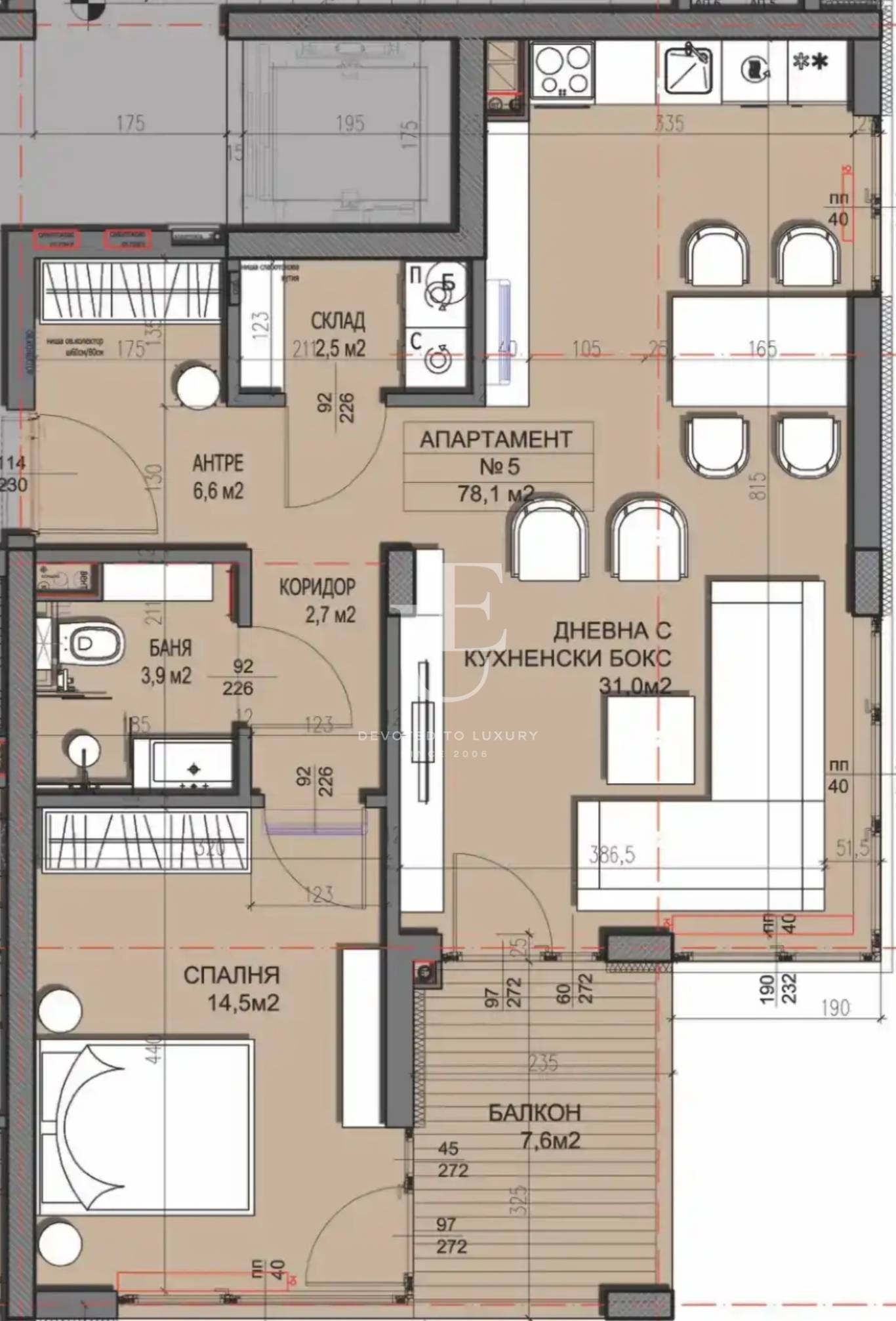 Апартаментът е със следното разпределение: входно атре, просторна дневна с кухненски бокс, спалня, баня с тоалетна, склад и балкон. Цената е без включен ДДС. Ref. ID:24831