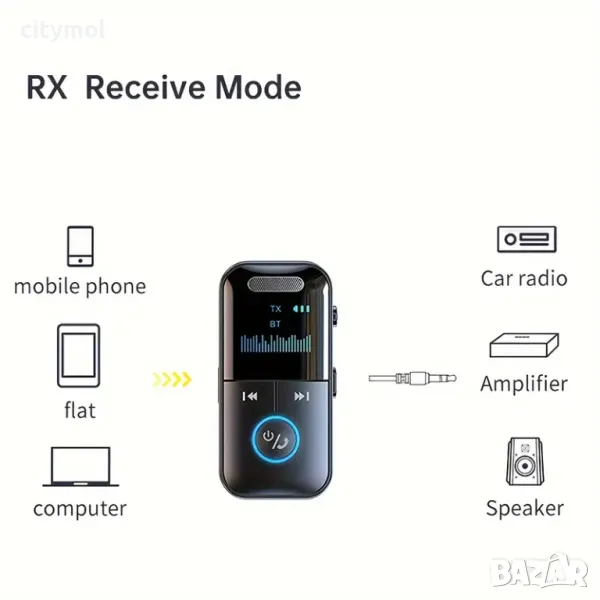 2 в 1 безжичен аудио адаптер, Bluetooth 5.4 приемник/предавател, 3,5 мм AUX, Micro SD, LED дисплей