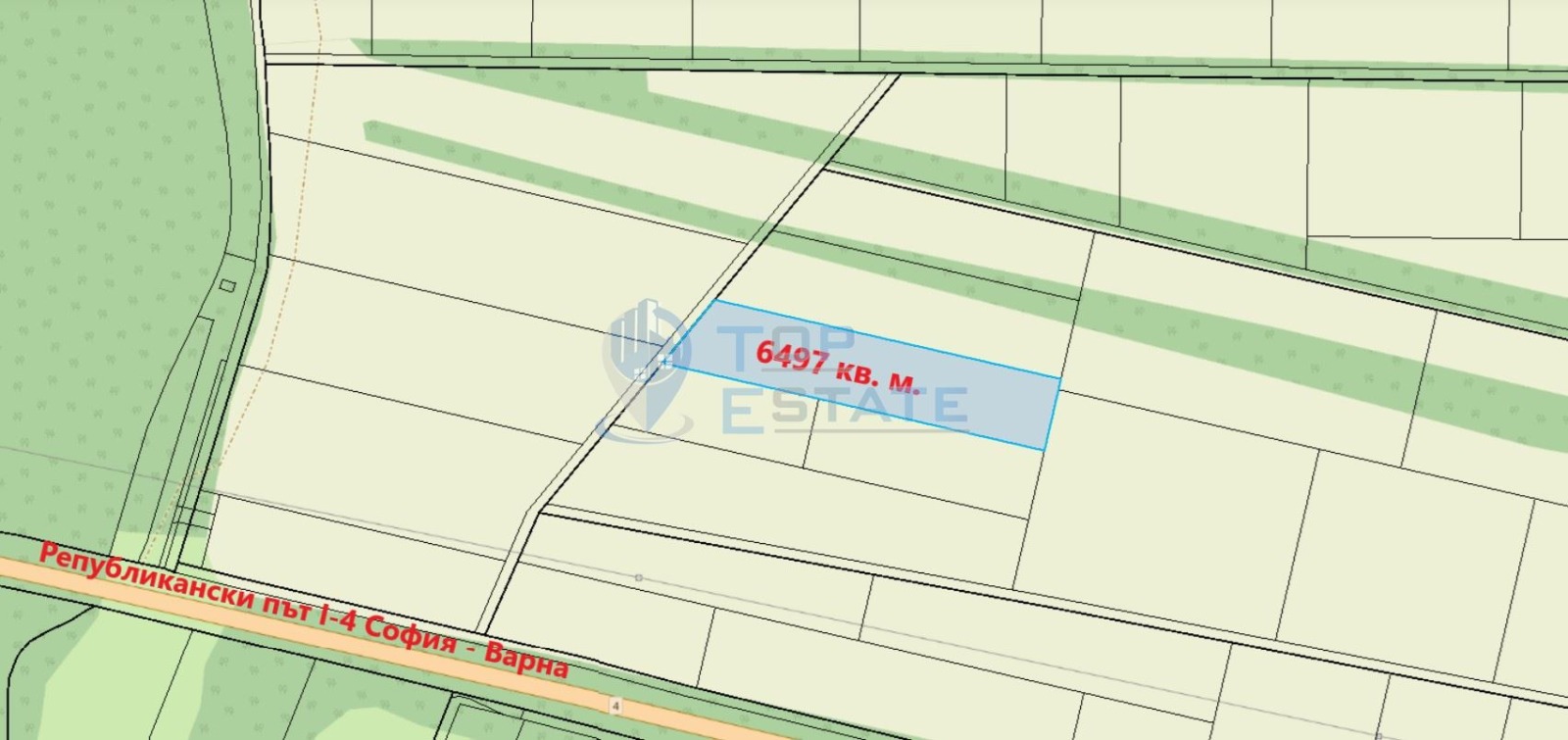 Топ Естейт Недвижми имоти Ви предлага парцел в непосредствена близост до главен път София Варна, в землището на село Леденик, област Велико Търново. Парцелът се намира на 150 метра от Републикански път I-4 София - Варна, на 6 км от центъра на град Велико Търново. Площта му е 6497 кв. м, извън регулация, категория 8. Номер на оферта: 2990. We speak English and German.