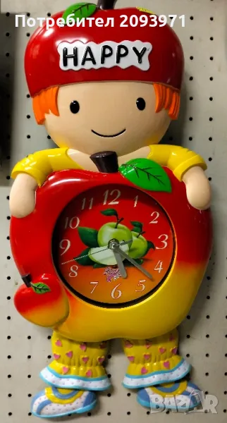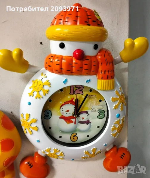 Детски стенен часовник с махало .Изработен е от пластмаса и работи с две батерии от волт и половина АА. Механизма не е безшумен. Размери на жирафчето: височина 40сантиметра, широчина 30сантиметра(крачетата са махало и се движат наляво и надясно). Чудесен подарък за Нова година на всяко послушно дете.СНЕЖНИЯТ ЧОВЕК И ЧОВЕЧЕТО С ЯБЪЛКАТА НЕ СА НАЛИЧНИ! предлагам и подаръчна опаковка на цена два-три лева в зависимост от големината на хартията и броя наGSM 0898441909