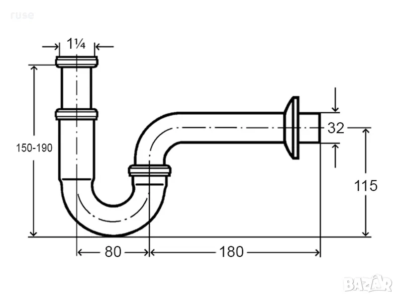 - С присъединителен размер 1 ¼" – подходящ за почти всички стандартни умивалници