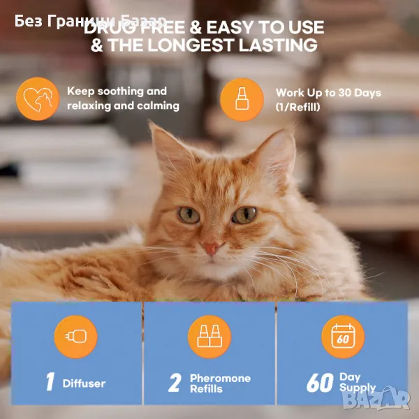 Нов Успокояващ дифузер за котки – 60 дни действие, феромони Антистрес