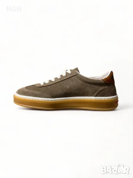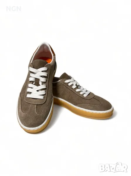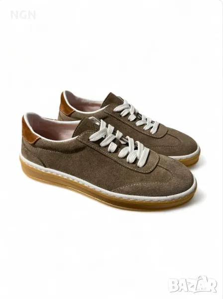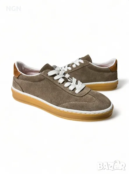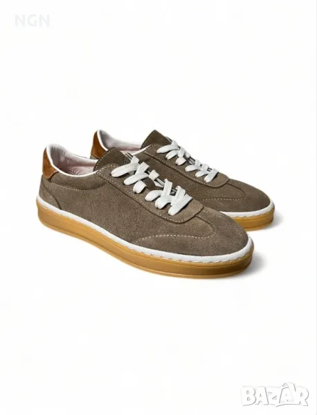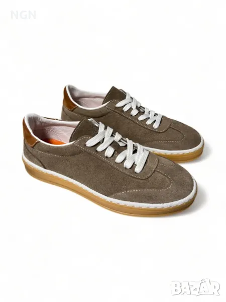 Уникален модел дизайнерски дамски сникърси с модерен италиански дизайн. Модел изработен от естествен велур в така актуалния за сезон пролет-лято 2025 цвят mocha mousse и стелка от естествена кожа с мемори пяна. Супер леки, комфортни и удобни. С дизайнерско лого на петата.