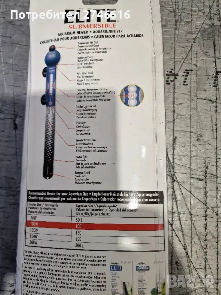 Нагревател за аквариум 100W, снимка 1 - Оборудване за аквариуми - 48681907 Нагревател за аквариум 100W, снимка 2 - Оборудване за аквариуми - 48681907 Нагревател за аквариум 100W, снимка 3 - Оборудване за аквариуми - 48681907 1/3