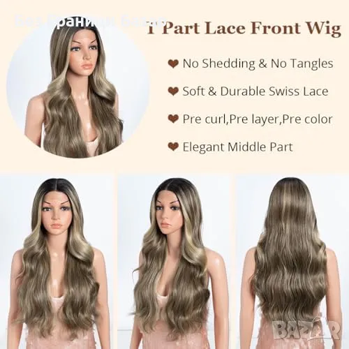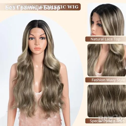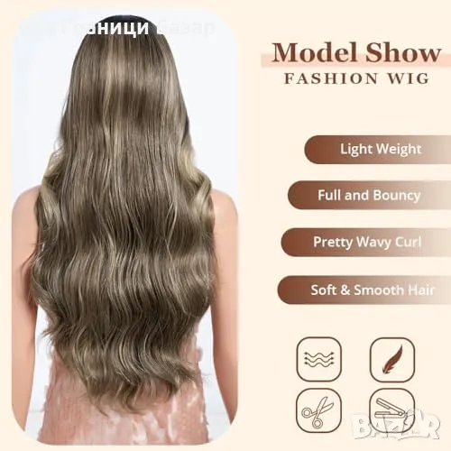 Дълга синтетична перука с дължина 28 инча и естествени вълни.