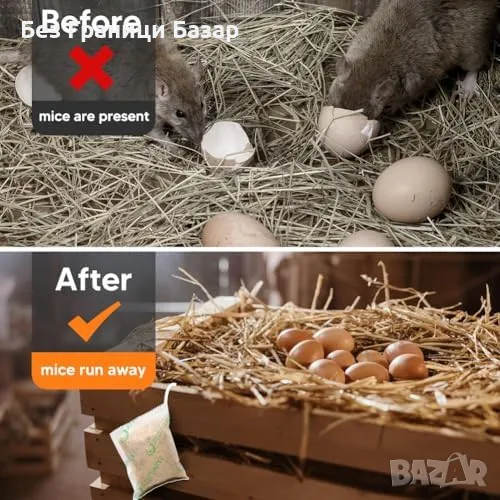 Ефективно отблъсква вредители: Силна формула за защита от мишки, хлебарки, комари, паяци, молци и други.