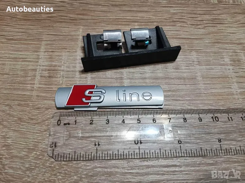 нови емблеми за Audi S line в сив цвят за предна решетка. Размерите са дадени на снимките. Цената е за 1 бр.