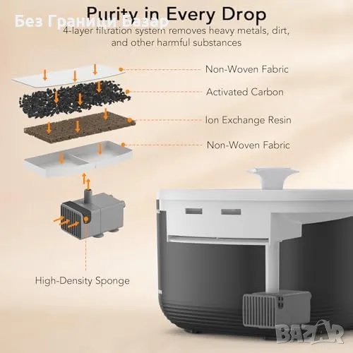 Ефективна филтрация: 5-степенна система за свежа и чиста вода до 4 седмици.