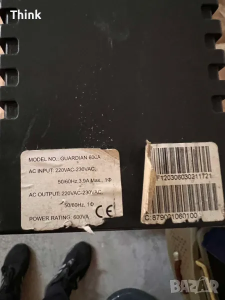 Входен капацитет (VA) 600 Напрежение 220V или 230V Диапазон на входното напрежение -25%, +30% Честота 50 или 60 Hz (автоматично отчитане) Фактор на изходната мощност 0,6 Напрежение (На батерия) 220V или 230V ±10% Waveform (Включено) батерия) Симулирана честота на синусоида (На батерия) 50 или 60 Hz ±1Hz регулиране на напрежението (AVR) AVR автоматично увеличава изходното напрежение с 15% над входното напрежение, ако -10% до -26% от номиналното AVR автоматично намалява изходното напрежение с 15% под входното напрежение, ако +10% до +22% от номиналното време за трансфер 2 - 6 ms. Изходи 1 бр. Schuko 1 бр. Поддръжка на тип батерия IEC - Безплатни оловно-киселинни батерии Време за презареждане 6 часа (до 90% от пълния капацитет) Напрежение 12 VDC Време за резервно копиране 5-30 минути (в зависимост от натоварването на компютъра) Дисплей LED дисплей Грешка, режим на батерия, AC Режим Защита Късо съединение, Претоварване, Разреждане на батерията, Презареждане Звукови аларми Режим на батерия (всеки 10 секунди) Изтощена батерия (всяка секунда) Претоварване (на всеки 0,5 секунди) Смяна на батерия (на всеки 2 секунди) Повреда (непрекъснато).