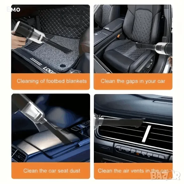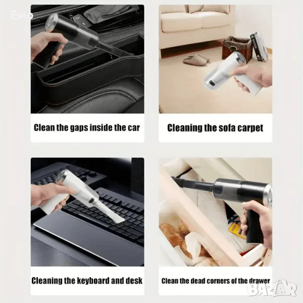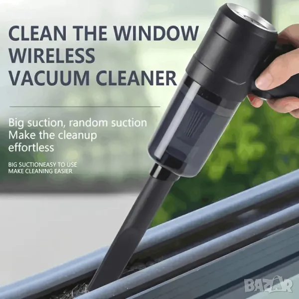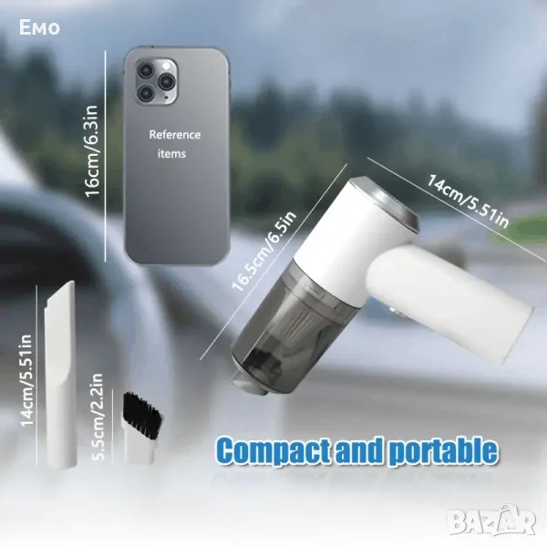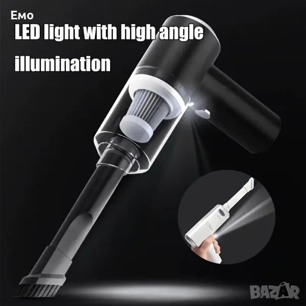 Силно засмукване, компактна и удобна за почистване на дома, колата, клавиатурата и други.