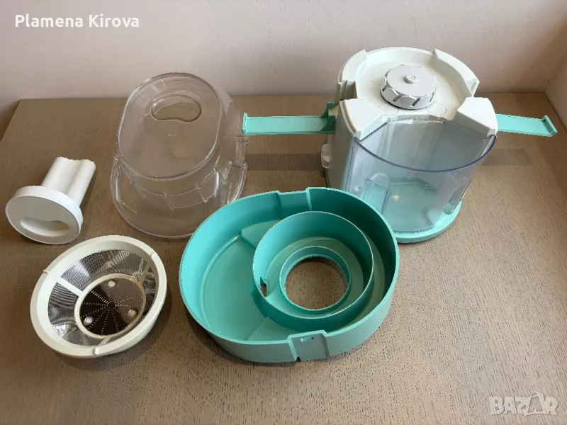 Уредът се ползва само за твърди плодове и зеленчуци. Ползван е, но е в отлично техническо състояние. Измит е много внимателно - като забележка мога да отбележа, че пластмасата на филтъра е пожълтяла (последната снимка).
