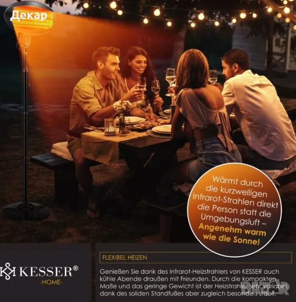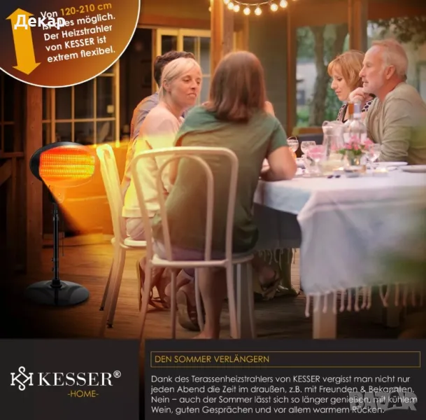 Инфрачервен нагревател KESSER 2000 вата, регулируема височина , нагревател за вътрешен двор
