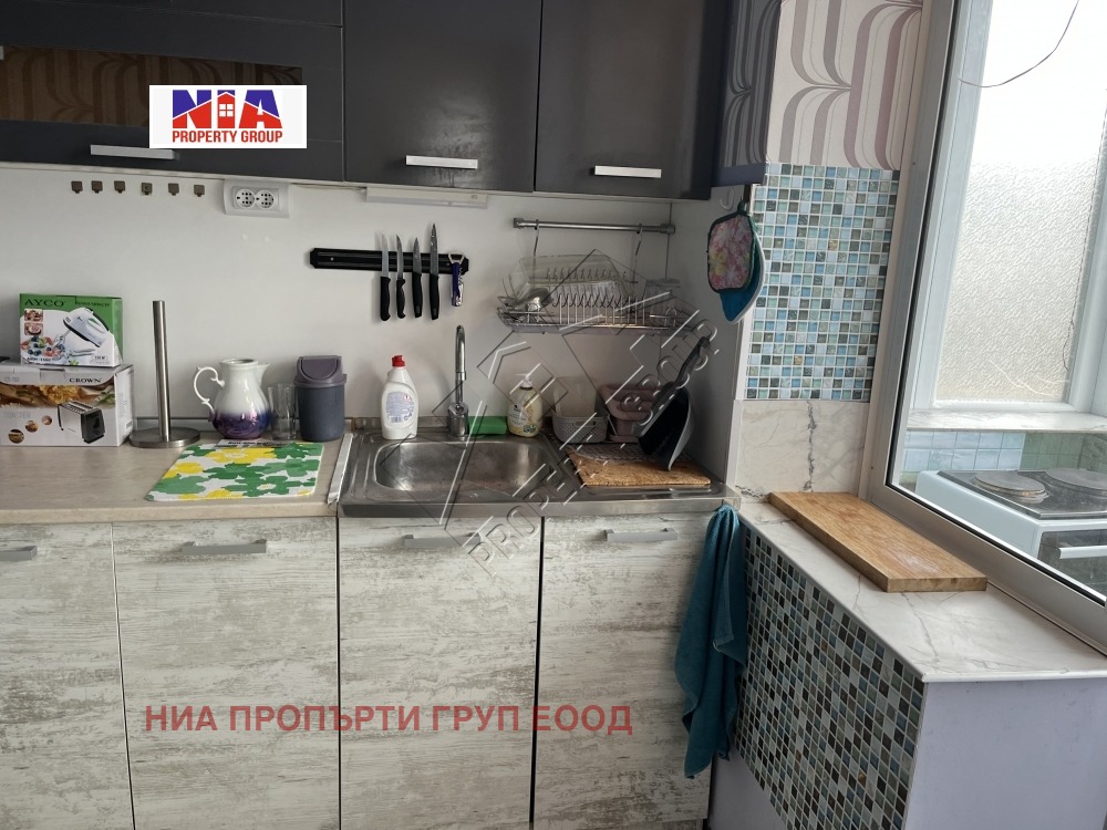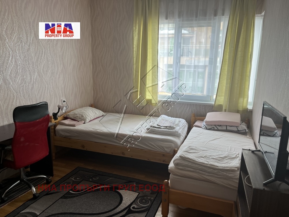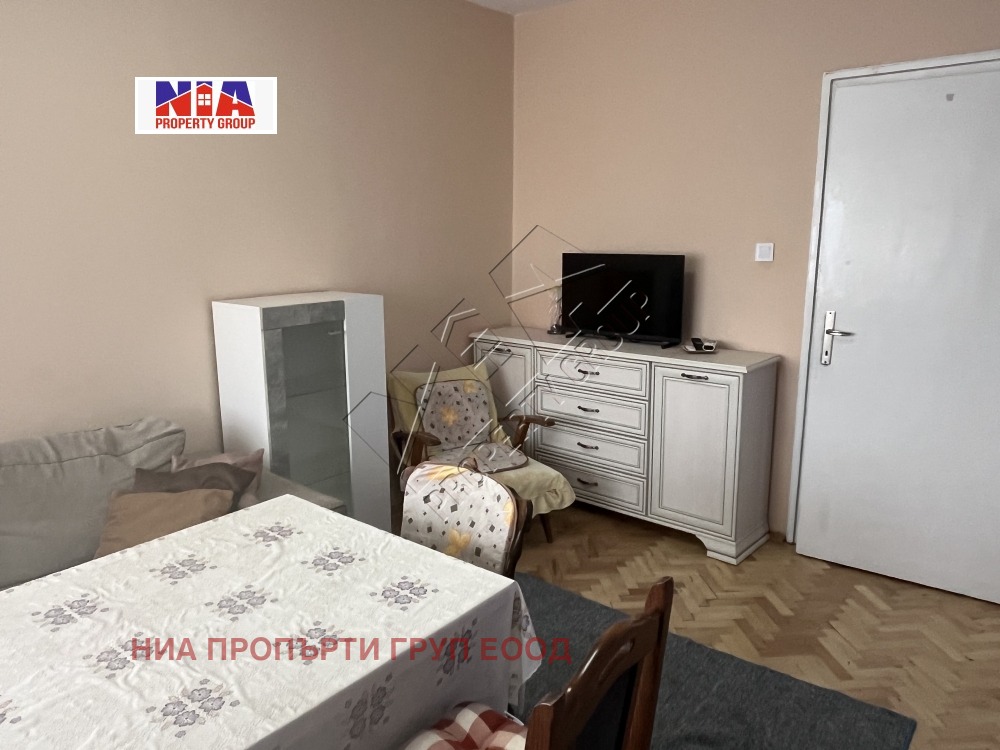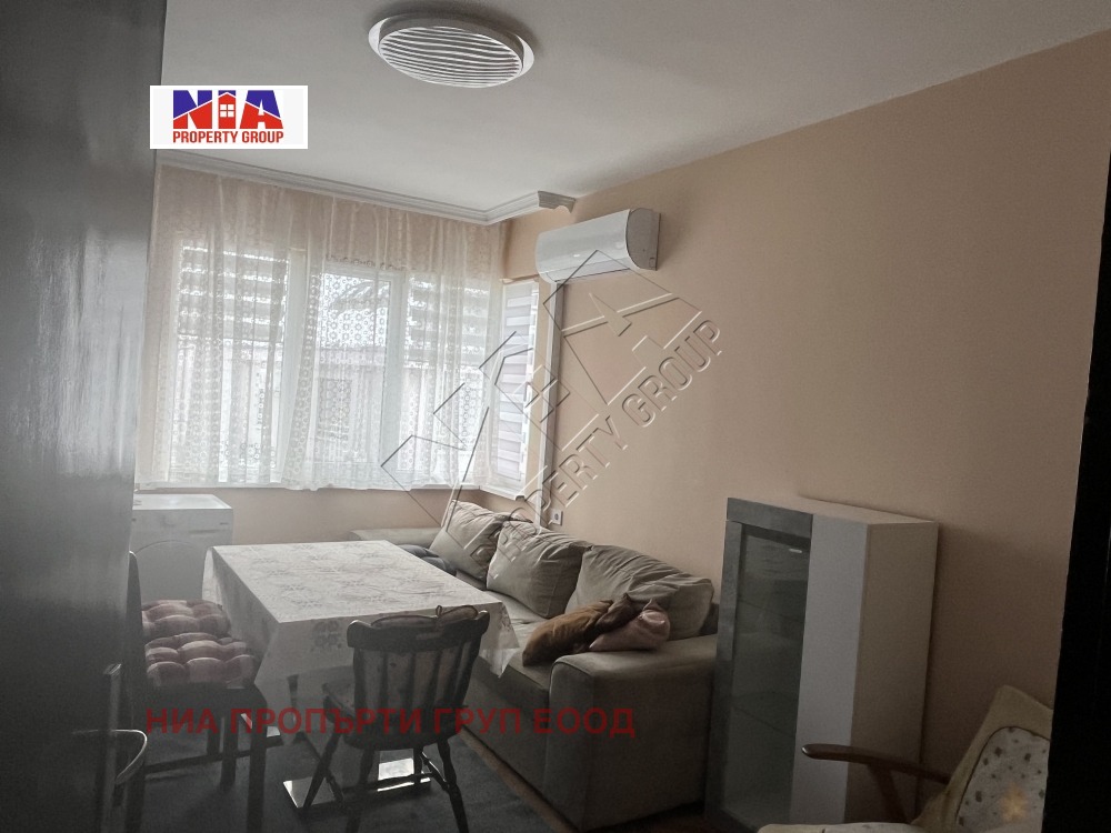 Имота разполага с 1 спалня с изложение север и 1 спалня с изложение изток .Всекидневната е голяма с южно изложение с нови диван и инвенторен климатик.
