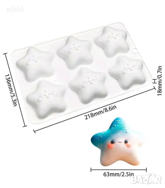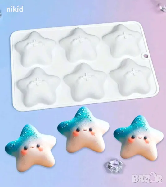 6 звезди Звезда лице силиконов молд форма фондан шоколад гипс сапун → Обява 48684861