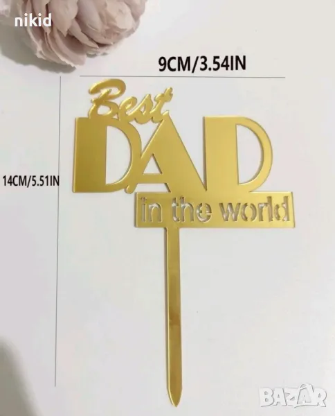 Best Dad in the world златист пластмасов топер украса за торта татко баща → Обява 48684896
