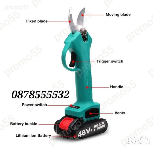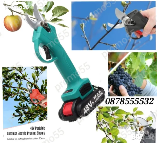 ПРОМОЦИЯ! Акумулаторна Лозарска Ножица, Градинска Ножица 48V с Две Батерии