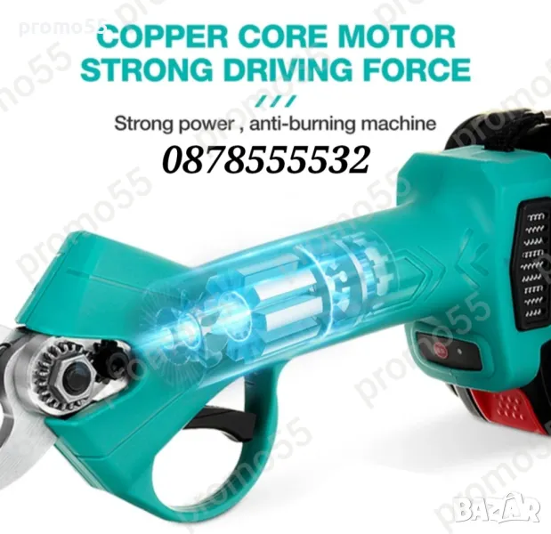 Безжична ножица, която гарантира гладко рязане на клони без много усилие, което е нейното уникално преимущество спрямо ръчните ножици.